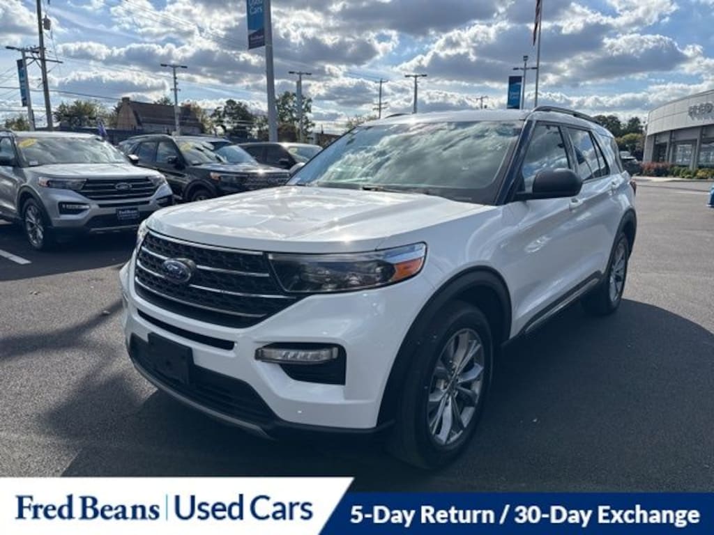 Recent Arrival! 2022 Ford Explorer XLT 2.3L EcoBoost I-4 10-Speed Automatic 4WD 4D Sport Utility Star White Metallic Tri-Coat Great Service History, 3 Month / 4,000 Mile Comprehensive Warranty, Factory Certified Vehicle, Free First Oil Change, Auto Reward Program, 4WD.