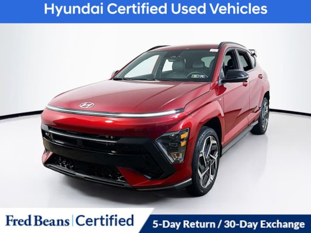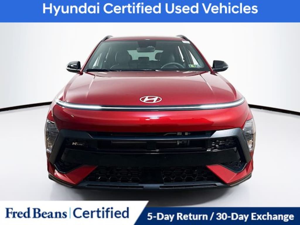 Introducing the 2025 Hyundai Kona N Line S - a dynamic and feature-rich compact SUV that's ready to elevate your driving experience. With its striking Ultimate Red Metallic exterior and a host of premium amenities, this certified pre-owned Kona is the perfect blend of style, performance, and value.