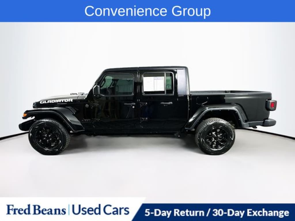 2022 Jeep Gladiator Altitude 3.6L V6 24V VVT 8-Speed Automatic 4WD 4D Crew Cab Black Clearcoat Automatic Headlamps, Black 3-Piece Hard Top, Black Grille, Body Color Fender Flares (2-Piece), Convenience Group, Daytime Running Lamp System, Deep Tint Sunscreen Windows, Front 1-Touch Down Power Windows, Gloss Black Instrument Panel Bezels, Leather Wrapped Steering Wheel, Mold In Color Bumper w/Gloss Black, Normal Duty Plus Suspension, Power Heated Mirrors, Power Tailgate Lock, Quick Order Package 24T Altitude, Remote Keyless Entry, Security Alarm, Speed Sensitive Power Locks, Sun Visors w/Illuminated Vanity Mirrors, Technology Group, Trailer Tow Package, Universal Garage Door Opener, Wheels: 17" x 7.5" Gloss Black Aluminum.