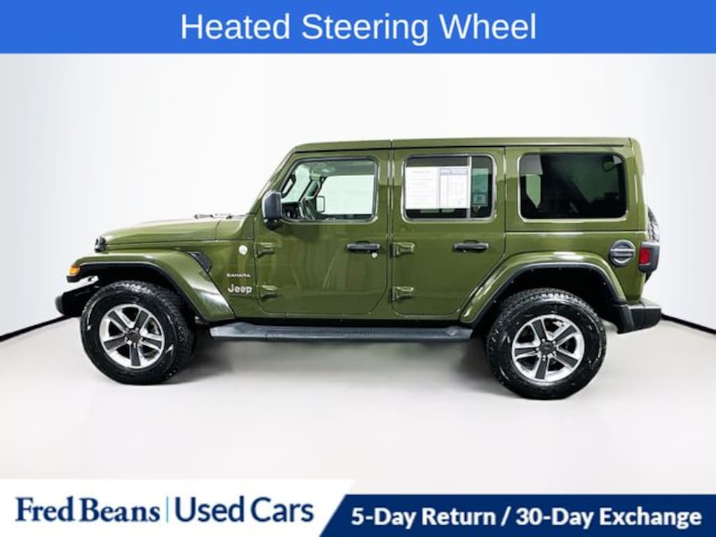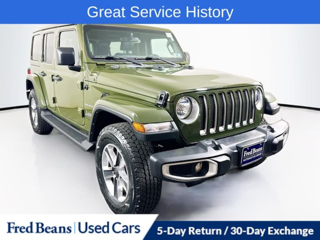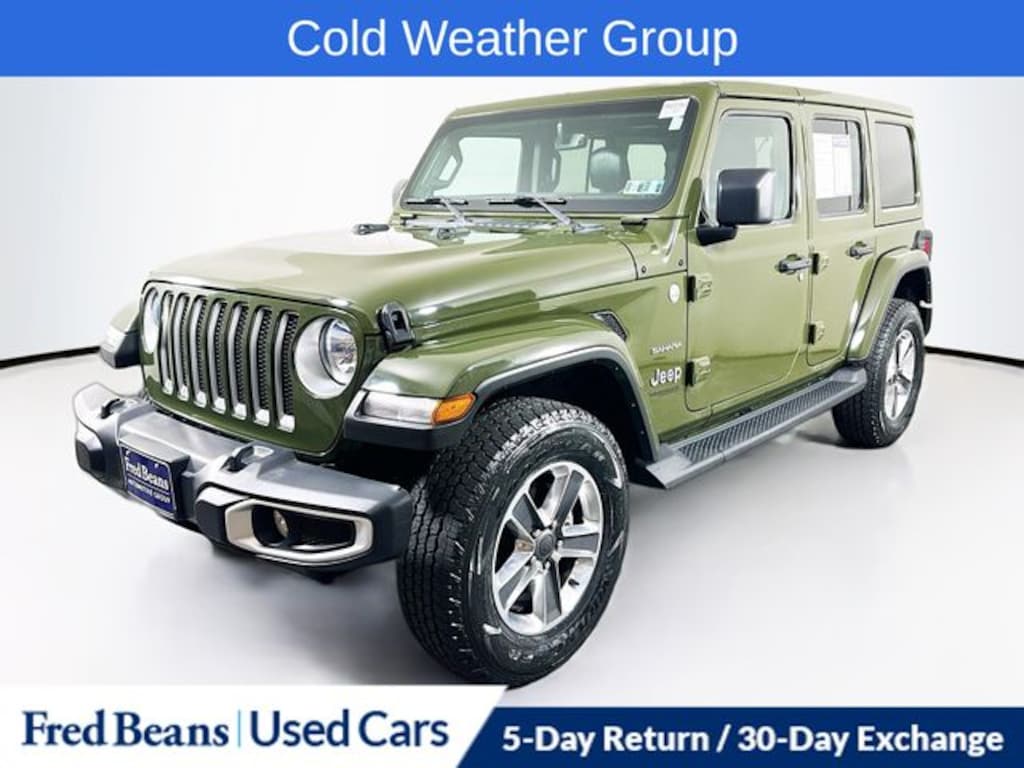 2022 Jeep Wrangler Unlimited Sahara 3.6L V6 24V VVT 8-Speed Automatic 4WD 4D Sport Utility Sarge Green Clearcoat Great Service History, Apple CarPlay/Android Auto, Cold Weather Group, Heated Front Seats, Heated Steering Wheel, Navigation System.