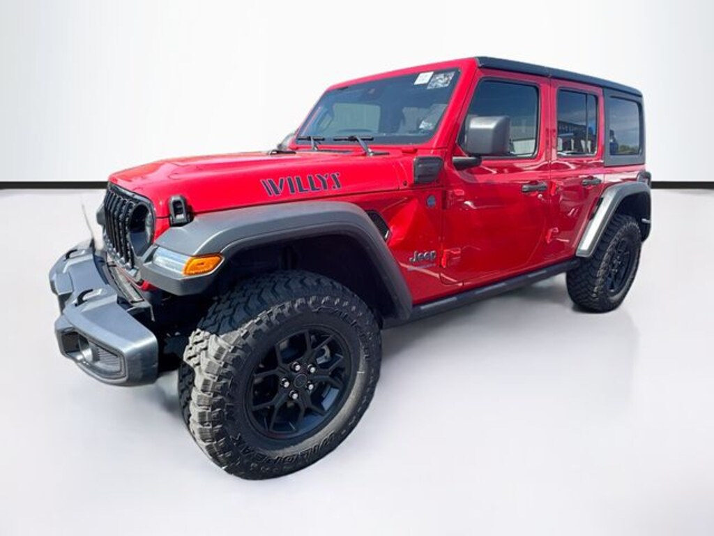 Recent Arrival! 2025 Jeep Wrangler Willys 4xe 2.0L I4 DOHC 8-Speed Automatic 4WD 4D Sport Utility Firecracker Red Clearcoat 7 Year / 100k Powertrain Warranty, 12 Month / 12,000 Mile Comprehensive Warranty.