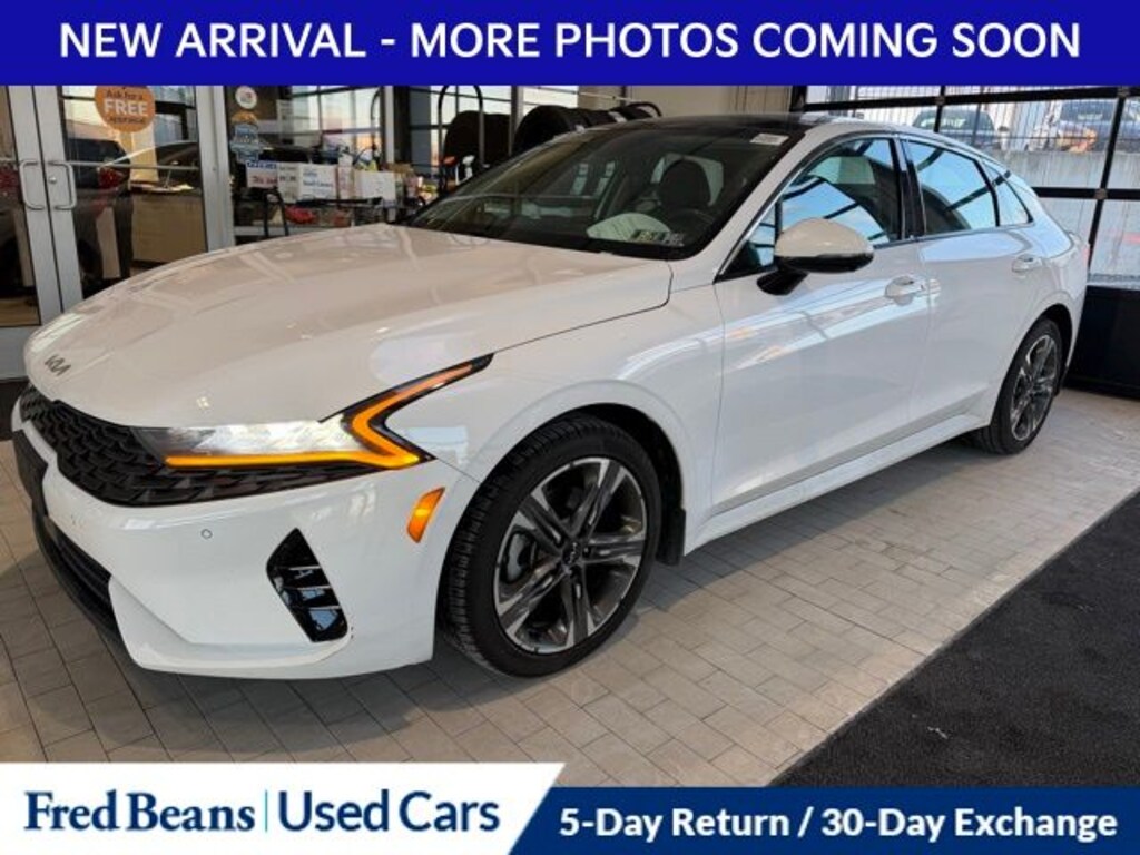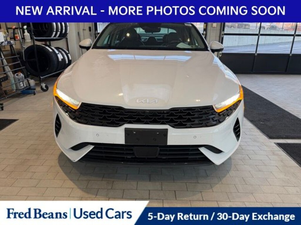 Recent Arrival! 2022 Kia K5 EX I4 8-Speed Automatic FWD 4D Sedan Glacial White Pearl 10-Way Power Passenger Seat, 4-Wheel Disc Brakes, 6 Speakers, ABS brakes, Active Sound Design, Air Conditioning, Alloy wheels, AM/FM radio: SiriusXM, Apple CarPlay & Android Auto, Auto High-beam Headlights, Auto Up/Down Rear Windows, Automatic temperature control, Bose Premium Audio, Brake assist, Bumpers: body-color, Carpeted Floor Mats, Delay-off headlights, Driver door bin, Driver vanity mirror, Dual front impact airbags, Dual front side impact airbags, Electronic Stability Control, Emergency communication system, EX Premium Package, Forward Collision Avoidance-Assist - Cyclist, Forward Collision Avoidance-Assist - Junction Turn, Four wheel independent suspension, Front anti-roll bar, Front Bucket Seats, Front Center Armrest, Front dual zone A/C, Front reading lights, Fully automatic headlights, Heated & Ventilated Front Bucket Seats, Heated door mirrors, Heated front seats, Heated Steering Wheel, Illuminated entry, Knee airbag, Leatherette Seat Trim, LED Rear Combi Lamps, Low tire pressure warning, Memory Driver's Seat & Outside Mirrors, Navigation System, Navigation-Based Smart Cruise Control - Curve, Occupant sensing airbag, Outside Mirrors w/LED Turn Signals, Outside temperature display, Overhead airbag, Overhead console, Panic alarm, Parking Collision Avoidance-Assist - Reverse, Parking Distance Warning - Forward, Passenger door bin, Passenger vanity mirror, Power Child Lock, Power door mirrors, Power driver seat, Power Folding Outside Mirrors, Power moonroof, Power steering, Power windows, Radio data system, Radio: AM/FM/MP3 Audio System, Rear anti-roll bar, Rear reading lights, Rear seat center armrest, Rear side impact airbag, Rear window defroster, Remote keyless entry, Safe Exit Assist w/Lock, Security system, Smart Cruise Control w/Stop & Go, Smart Key w/ Push Button and Remote Start, Speed control, Speed-sensing steering, Split folding rear seat, Steering wheel mounted audio controls, Surround View Monitor, Tachometer, Telescoping steering wheel, Tilt steering wheel, Traction control, Trip computer, Variably intermittent wipers, Ventilated front seats, Wheel Locks, Wheels: 7.5J x 18" Gray Machined Finish Alloy.