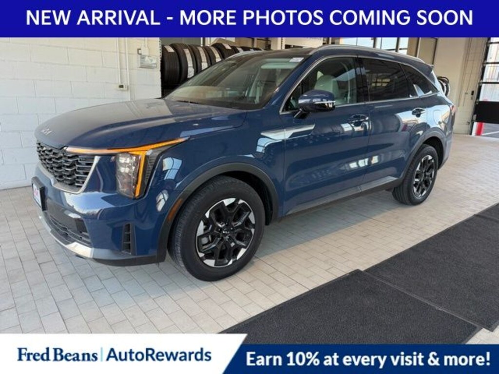 Recent Arrival! 2025 Kia Sorento S 2.5L I4 DGI DOHC 16V LEV3-SULEV30 191hp 8-Speed Automatic FWD 4D Sport Utility Midnight Lake Blue Kia Certified Pre-Owned Certified, 3rd row seats: split-bench, 4-Wheel Disc Brakes, 6 Speakers, ABS brakes, Air Conditioning, Alloy wheels, AM/FM radio: SiriusXM, Apple CarPlay & Android Auto, Auto High-beam Headlights, Automatic temperature control, Brake assist, Bumpers: body-color, Carpeted Floor Mats, Delay-off headlights, Driver door bin, Driver vanity mirror, Dual front impact airbags, Dual front side impact airbags, Electronic Stability Control, Emergency communication system: 911 Connect, Exterior Parking Camera Rear, Four wheel independent suspension, Front anti-roll bar, Front Bucket Seats, Front Center Armrest, Front dual zone A/C, Front reading lights, Fully automatic headlights, Heated door mirrors, Heated Front Bucket Seats, Heated front seats, Illuminated entry, Knee airbag, Leather Shift Knob, Leather steering wheel, LED Interior Lighting, Low tire pressure warning, Navigation System, Occupant sensing airbag, Outside temperature display, Overhead airbag, Overhead console, Panic alarm, Panoramic Power Sunroof w/Power Sunshade, Panoramic Sunroof Package, Passenger door bin, Passenger vanity mirror, Power door mirrors, Power driver seat, Power steering, Power windows, Radio data system, Radio: AM/FM Standard Sound System, Rear anti-roll bar, Rear reading lights, Rear seat center armrest, Rear side impact airbag, Rear window defroster, Rear window wiper, Remote keyless entry, Security system, Speed control, Speed-sensing steering, Split folding rear seat, Spoiler, Steering wheel mounted audio controls, SynTex Artificial Leather Seat Trim, Tachometer, Telescoping steering wheel, Tilt steering wheel, Traction control, Trip computer, Turn signal indicator mirrors, Variably intermittent wipers, Wheels: 18" Gloss Black Alloy.