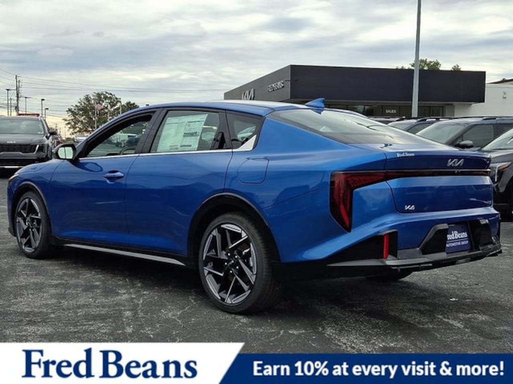 Visit our Website for a Complimentary CarFax Report!!!, Free First Oil Change, Auto Reward Program, 4-Wheel Disc Brakes, 6 Speakers, ABS brakes, Acoustic Windshield, Air Conditioning, Alloy wheels, AM/FM radio: SiriusXM, Apple CarPlay & Android Auto, Auto High-beam Headlights, Automatic temperature control, Brake assist, Bumpers: body-color, Carpeted Floor Mats, Cloth/SynTex Seat Trim, Delay-off headlights, Driver door bin, Driver vanity mirror, Driver's Seat & Outer-Mirrors Memory, Dual front impact airbags, Dual front side impact airbags, Electronic Stability Control, Four wheel independent suspension, Front anti-roll bar, Front Bucket Seats, Front Center Armrest, Front dual zone A/C, Front Heated Bucket Seats, Front reading lights, Fully automatic headlights, GT-Line Premium Package, GT-Line Sunroof Package, harman/kardon Premium Audio, Heated door mirrors, Heated front seats, Illuminated entry, Low tire pressure warning, Navigation System, Occupant sensing airbag, Outside temperature display, Overhead airbag, Overhead console, Panic alarm, Passenger door bin, Passenger vanity mirror, Power door mirrors, Power driver seat, Power steering, Power windows, Radio data system, Radio: 12.3" Touchscreen Audio Display, Rear anti-roll bar, Rear seat center armrest, Rear side impact airbag, Rear window defroster, Remote keyless entry, Security system, Speed control, Split folding rear seat, Sport steering wheel, Steering wheel mounted audio controls, SynTex Seat Trim, Tachometer, Telescoping steering wheel, Tilt steering wheel, Traction control, Trip computer, Turn signal indicator mirrors, Variably intermittent wipers, Ventilated Front Seats, Wheels: 18" x 8.0J Black Machined Alloy, Wide Power Sunroof w/Power Sunshade. 2025 Kia K4 GT-Line GT-Line 2.0L I4 MPI FWD Wave Blue Price includes: $1000 - KFA Dealer Choice Program: $1000 discount and 5.50% APR for 36 months. $30.20 per $1000 financed. Available to well qualified buyers who finance through Kia Finance America. 506. Exp. 11/03/2025
