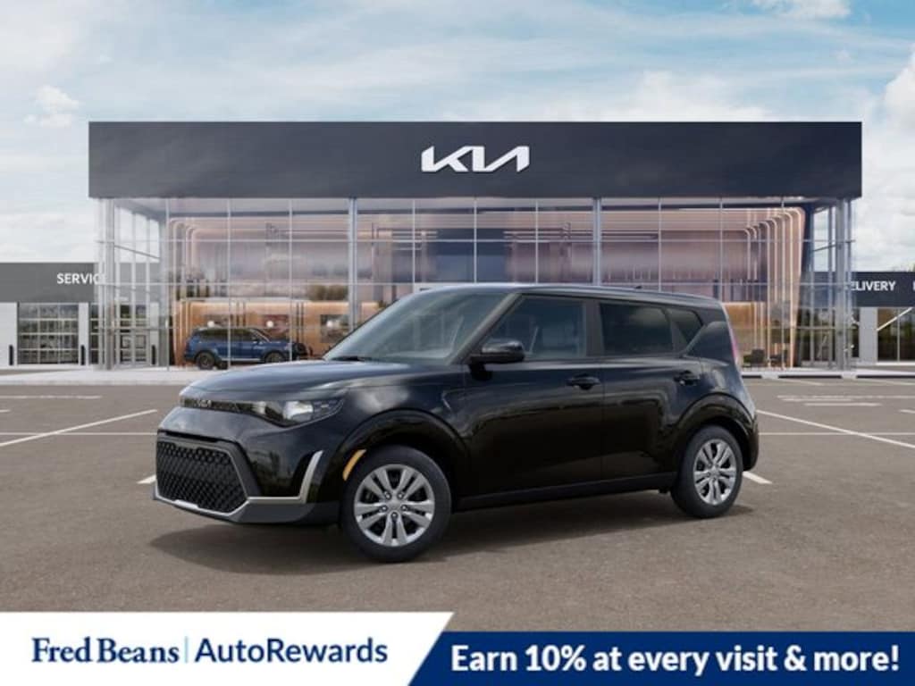 4-Wheel Disc Brakes, 6 Speakers, 6.5J x 16" Alloy Wheels, 6.5J x 16" Steel Wheels, ABS brakes, Air Conditioning, AM/FM radio, Apple CarPlay & Android Auto, Auto High-beam Headlights, Brake assist, Bumpers: body-color, Carpeted Floor Mats, Compass, Delay-off headlights, Driver door bin, Driver vanity mirror, Dual front impact airbags, Dual front side impact airbags, Electronic Stability Control, Exterior Parking Camera Rear, Front anti-roll bar, Front Bucket Seats, Front Center Armrest, Front reading lights, Front wheel independent suspension, Fully automatic headlights, Illuminated entry, Low tire pressure warning, Occupant sensing airbag, Outside temperature display, Overhead airbag, Overhead console, Panic alarm, Passenger door bin, Passenger vanity mirror, Power door mirrors, Power steering, Power windows, Radio data system, Radio: AM/FM/MP3/HD Audio System, Rear window defroster, Rear window wiper, Remote keyless entry, Speed control, Speed-sensing steering, Split folding rear seat, Steering wheel mounted audio controls, Tachometer, Telescoping steering wheel, Tilt steering wheel, Traction control, Trip computer, Variably intermittent wipers, Woven & Tricot Cloth Seat Trim. 2025 Kia Soul LX LX 2.0L I4 DOHC FWD Fusion Black Price includes: $500 - Kia Customer Cash. Exp. 11/03/2025