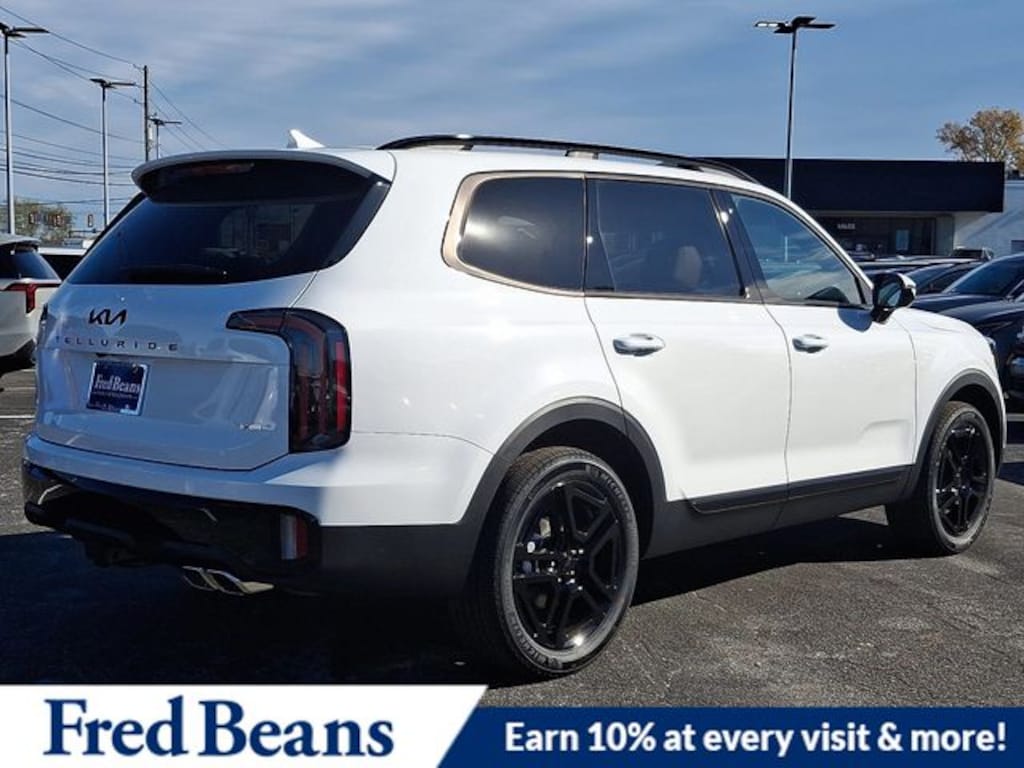 Visit our Website for a Complimentary CarFax Report!!!, Free First Oil Change, Auto Reward Program, 10 Speakers, 3rd row seats: split-bench, 4-Wheel Disc Brakes, ABS brakes, Air Conditioning, All Weather Floor Mats, Alloy wheels, AM/FM radio: SiriusXM, Apple CarPlay & Android Auto, Auto High-beam Headlights, Auto-dimming Rear-View mirror, Auto-leveling suspension, Automatic temperature control, Brake assist, Bumpers: body-color, Compass, Delay-off headlights, Driver door bin, Driver vanity mirror, Dual front impact airbags, Dual front side impact airbags, Electronic Stability Control, Emergency communication system: 911 Connect, Exterior Parking Camera Rear, Four wheel independent suspension, Front anti-roll bar, Front Bucket Seats, Front Center Armrest, Front dual zone A/C, Front fog lights, Front reading lights, Fully automatic headlights, Garage door transmitter: HomeLink, harman/kardon® Speakers, Heads-Up Display, Heated & Ventilated Front Bucket Seats, Heated door mirrors, Heated front seats, Heated rear seats, Heated steering wheel, Illuminated entry, Knee airbag, Leather Shift Knob, Leather steering wheel, Low tire pressure warning, Memory seat, Nappa Leather Seat Trim, Navigation System, Occupant sensing airbag, Outside temperature display, Overhead airbag, Overhead console, Panic alarm, Passenger door bin, Passenger vanity mirror, Power door mirrors, Power driver seat, Power Liftgate, Power moonroof, Power passenger seat, Power steering, Power windows, Radio data system, Radio: AM/FM Harman Kardon Audio System, Rain sensing wipers, Rear air conditioning, Rear anti-roll bar, Rear audio controls, Rear reading lights, Rear side impact airbag, Rear window defroster, Rear window wiper, Reclining 3rd row seat, Remote keyless entry, Security system, Speed control, Speed-sensing steering, Split folding rear seat, Spoiler, Steering wheel mounted audio controls, Tachometer, Telescoping steering wheel, Terracotta Interior Color Package, Tilt steering wheel, Tow Hitch w/Cover, Traction control, Trip computer, Turn signal indicator mirrors, Variably intermittent wipers, Ventilated front seats, Ventilated rear seats, Wheels: 20" x 7.5" Black Finish X-LINE Exclusive. 2025 Kia Telluride SX-Prestige X-Line SX-Prestige X-Line 3.8L V6 DOHC AWD Glacial White Pearl Price includes: $1000 - Sticker Sales Event Retail Bonus Cash. Exp. 01/02/2026 $2000 - KFA Dealer Choice Program: $2000 discount and 5.25% APR for 36 months. $30.08 per $1000 financed. Available to well qualified buyers who finance through Kia Finance America. 506. Exp. 01/02/2026