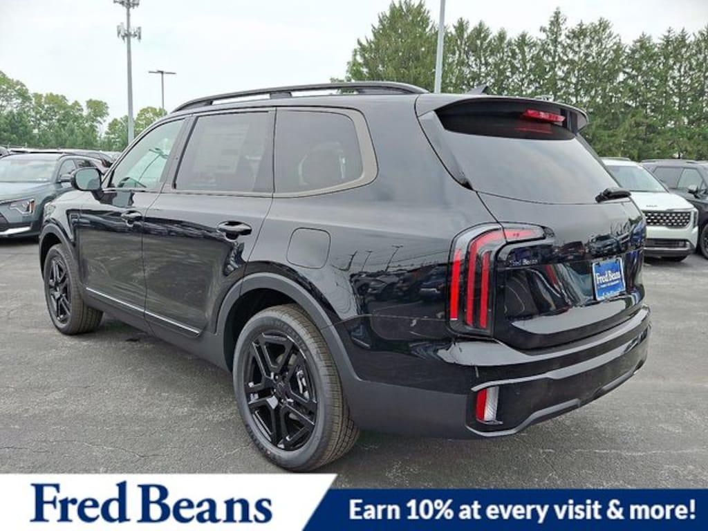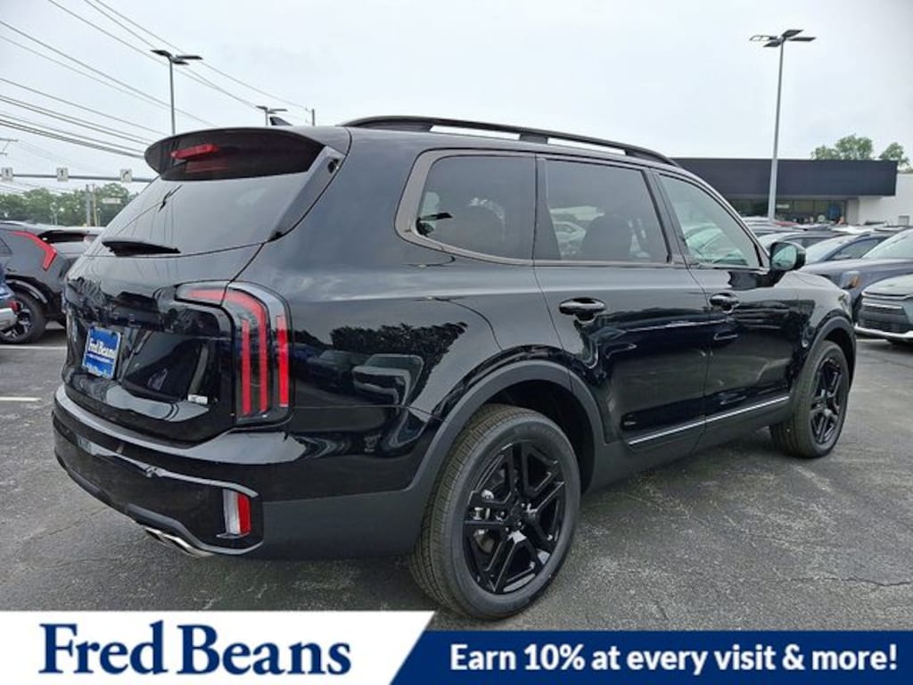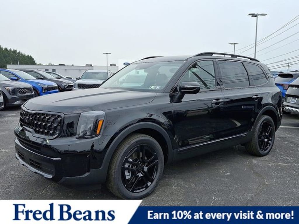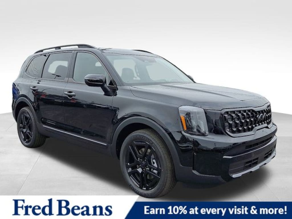 Visit our Website for a Complimentary CarFax Report!!!, Free First Oil Change, Auto Reward Program, 3rd row seats: split-bench, 4-Wheel Disc Brakes, 6 Speakers, ABS brakes, Air Conditioning, Alloy wheels, AM/FM radio: SiriusXM, Apple CarPlay & Android Auto, Auto High-beam Headlights, Auto-dimming Rear-View mirror, Auto-leveling suspension, Automatic temperature control, Brake assist, Bumpers: body-color, Compass, Delay-off headlights, Driver door bin, Driver vanity mirror, Dual front impact airbags, Dual front side impact airbags, Electronic Stability Control, Emergency communication system: 911 Connect, Exterior Parking Camera Rear, Four wheel independent suspension, Front anti-roll bar, Front Bucket Seats, Front Center Armrest, Front dual zone A/C, Front reading lights, Fully automatic headlights, Heated & Ventilated Front Bucket Seats, Heated door mirrors, Heated front seats, Heated steering wheel, Illuminated entry, Knee airbag, Leather Seat Trim, Leather Shift Knob, Leather steering wheel, Low tire pressure warning, Navigation System, Occupant sensing airbag, Outside temperature display, Overhead airbag, Overhead console, Panic alarm, Passenger door bin, Passenger vanity mirror, Power door mirrors, Power driver seat, Power Liftgate, Power moonroof, Power passenger seat, Power steering, Power windows, Radio data system, Radio: AM/FM Display Audio System, Rear air conditioning, Rear anti-roll bar, Rear audio controls, Rear reading lights, Rear side impact airbag, Rear window defroster, Rear window wiper, Reclining 3rd row seat, Remote keyless entry, Security system, Speed control, Speed-sensing steering, Split folding rear seat, Spoiler, Steering wheel mounted audio controls, Tachometer, Telescoping steering wheel, Tilt steering wheel, Traction control, Trip computer, Turn signal indicator mirrors, Variably intermittent wipers, Ventilated front seats, Wheels: 20" x 7.5" Black Finish X-LINE Exclusive. 2025 Kia Telluride EX X-Line EX X-Line 3.8L V6 DOHC AWD Ebony Black Price includes: $1500 - KFA Dealer Choice Program: $1500 discount and 5.50% APR for 36 months. $30.20 per $1000 financed. Available to well qualified buyers who finance through Kia Finance America. 506. Exp. 11/03/2025
