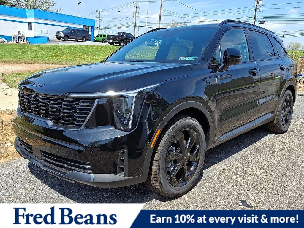 1.6L Turbo GDI 4-Cylinder, 12 Speakers, 3rd row seats: split-bench, 4-Wheel Disc Brakes, ABS brakes, Air Conditioning, Alloy wheels, AM/FM radio: SiriusXM, Apple CarPlay & Android Auto, Auto High-beam Headlights, Auto-dimming Rear-View mirror, Automatic temperature control, Brake assist, Bumpers: body-color, Carpeted Floor Mats, Delay-off headlights, Driver door bin, Driver vanity mirror, Dual front impact airbags, Dual front side impact airbags, Electronic Stability Control, Emergency communication system: 911 Connect, Exterior Parking Camera Rear, Four wheel independent suspension, Front anti-roll bar, Front Bucket Seats, Front Center Armrest, Front dual zone A/C, Front fog lights, Front reading lights, Fully automatic headlights, Garage door transmitter: HomeLink, Heated and Ventilated Front Bucket Seats, Heated door mirrors, Heated front seats, Heated rear seats, Heated steering wheel, Illuminated entry, Knee airbag, Leather steering wheel, Low tire pressure warning, Memory seat, Navigation System, Occupant sensing airbag, Outside temperature display, Overhead airbag, Overhead console, Panic alarm, Passenger door bin, Passenger vanity mirror, Perforated Genuine Leather Seat Trim, Power door mirrors, Power driver seat, Power Liftgate, Power moonroof, Power passenger seat, Power steering, Power windows, Radio data system, Radio: AM/FM/SiriusXM Audio System, Rain sensing wipers, Rear anti-roll bar, Rear reading lights, Rear side impact airbag, Rear window defroster, Rear window wiper, Remote keyless entry, Security system, Speed control, Speed-sensing steering, Split folding rear seat, Spoiler, Steering wheel mounted audio controls, Tachometer, Telescoping steering wheel, Tilt steering wheel, Tow Hitch (PnP), Traction control, Trip computer, Turn signal indicator mirrors, Variably intermittent wipers, Ventilated front seats, Wheels: 19" x 7.5J Machine-Finished Aero-Alloy, 1.6L Turbo GDI 4-Cylinder. 2026 Kia Sorento Hybrid X-Line SX Prestige X-Line SX Prestige 1.6L Turbo GDI 4-Cylinder AWD Aurora Black Pearl Price includes: $3000 - KFA Dealer Choice Program: $3000 discount and 5.25% APR for 36 months. $30.08 per $1000 financed. Available to well qualified buyers who finance through Kia Finance America. 506. Exp. 05/04/2026