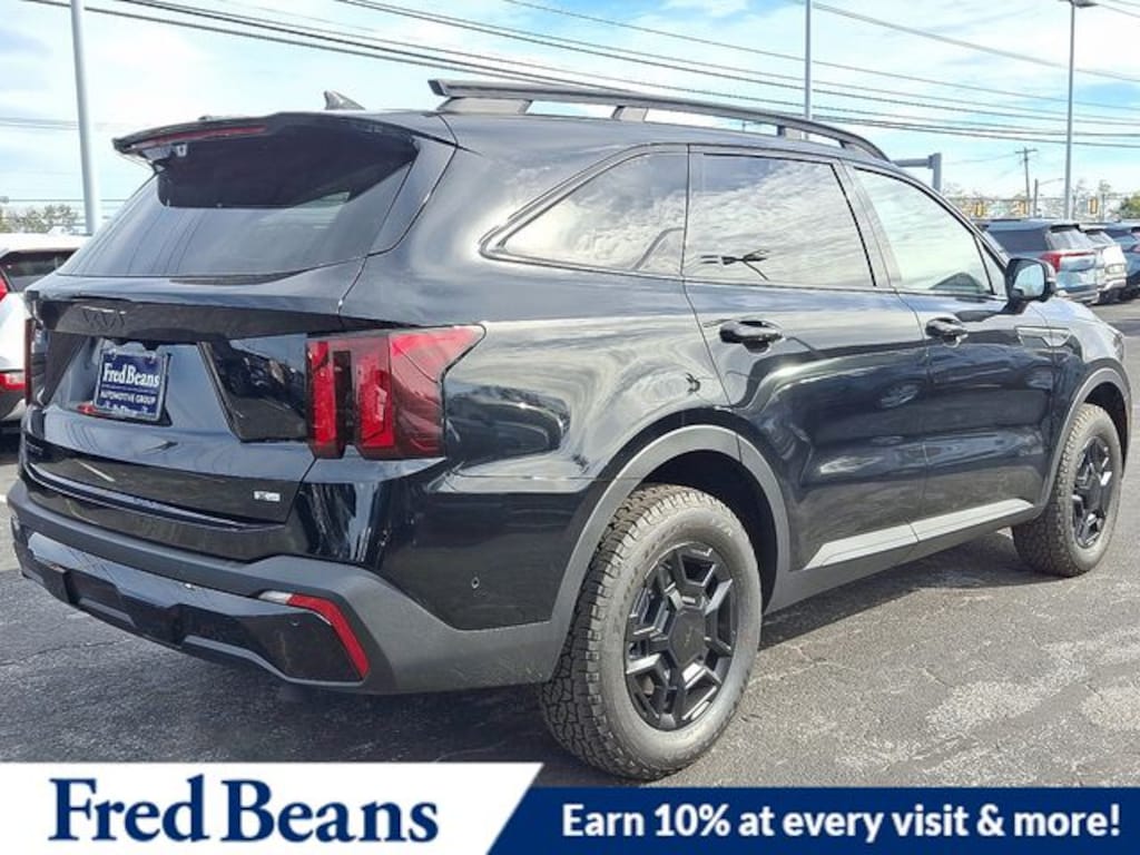 Visit our Website for a Complimentary CarFax Report!!!, Free First Oil Change, Auto Reward Program, AWD, 12 Speakers, 3rd row seats: split-bench, 4-Wheel Disc Brakes, ABS brakes, Air Conditioning, All Weather Floor Mats, Alloy wheels, AM/FM radio: SiriusXM, Apple CarPlay & Android Auto, Auto High-beam Headlights, Auto-dimming Rear-View mirror, Automatic temperature control, Brake assist, Bumpers: body-color, Delay-off headlights, Driver door bin, Driver vanity mirror, Dual front impact airbags, Dual front side impact airbags, Electronic Stability Control, Emergency communication system: 911 Connect, Exterior Parking Camera Rear, Four wheel independent suspension, Front anti-roll bar, Front Bucket Seats, Front Center Armrest, Front dual zone A/C, Front fog lights, Front reading lights, Fully automatic headlights, Garage door transmitter: HomeLink, Heated & Ventilated Front Bucket Seats, Heated door mirrors, Heated front seats, Heated rear seats, Heated steering wheel, Illuminated entry, Knee airbag, Leather Shift Knob, Leather steering wheel, Low tire pressure warning, Memory seat, Navigation System, Occupant sensing airbag, Outside temperature display, Overhead airbag, Overhead console, Panic alarm, Passenger door bin, Passenger vanity mirror, Perforated Genuine Leather Seat Trim, Power door mirrors, Power driver seat, Power Liftgate, Power moonroof, Power passenger seat, Power steering, Power windows, Radio data system, Radio: AM/FM Bose Premium Audio System, Rain sensing wipers, Rear anti-roll bar, Rear reading lights, Rear side impact airbag, Rear window defroster, Rear window wiper, Remote keyless entry, Security system, Speed control, Speed-sensing steering, Split folding rear seat, Spoiler, Steering wheel mounted audio controls, Tachometer, Telescoping steering wheel, Tilt steering wheel, Traction control, Trip computer, Turn signal indicator mirrors, Variably intermittent wipers, Ventilated front seats, Wheels: 17" Gloss Black Alloy, AWD. 2026 Kia Sorento X-Pro SX Prestige X-Pro SX Prestige 2.5L I4 DGI Turbocharged DOHC 16V LEV3-SULEV30 281hp AWD Ebony Black Price includes: $2500 - KFA Dealer Choice Program: $2500 discount and 5.25% APR for 36 months. $30.08 per $1000 financed. Available to well qualified buyers who finance through Kia Finance America. 506. Exp. 01/02/2026