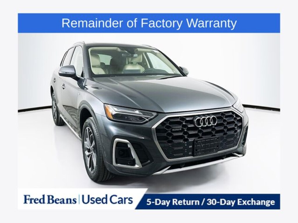 2023 Audi Q5 45 S line Premium quattro 2.0L Turbocharged 7-Speed Automatic S tronic quattro 4D Sport Utility Daytona Gray Pearl Remainder of Factory Warranty, Atlas Beige Leather.
