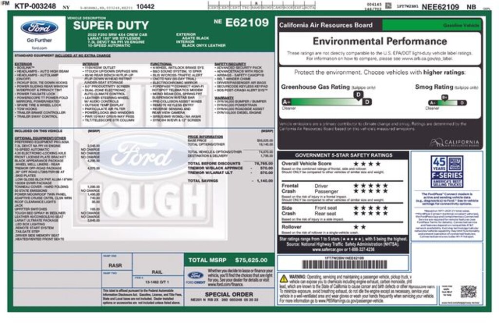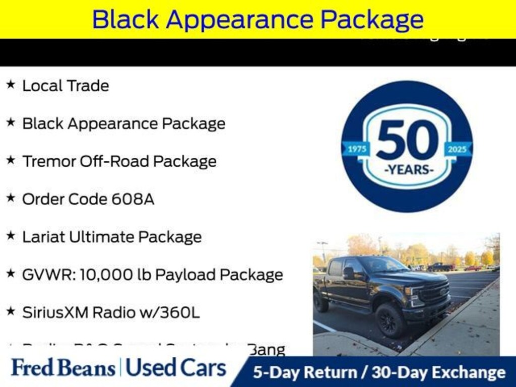 Recent Arrival! 2022 Ford F-250SD Lariat 7.3L V8 PFI SOHC 16V Federal 385hp 10-Speed Automatic 4WD 4D Crew Cab Agate Black Metallic Local Trade, 6" Ebony Black Angular Running Boards, ABS brakes, Alloy wheels, AM/FM radio: SiriusXM with 360L, Ambient Lighting - Fixed Color, Automatic temperature control, Black Appearance Package, Black Out Surrounds LED Only Headlamps, Body-Color Front & Rear Bumpers, Body-Color Wheellip Moldings, Compass, Easy Entry®/Exit Memory Driver's Seat Feature, Ebony Black Painted Front Grille Bars, Ebony Black Painted Mirror Caps, Electronic Stability Control, Electronic-Locking w/4.30 Axle Ratio, Exterior Parking Camera Rear, Flow-Through Console, Front dual zone A/C, Front fog lights, Front Leather Seating Surfaces 40/Console/40, GVWR: 10,000 lb Payload Package, Hard Folding Tonneau Pickup Box Cover (Pre-Installed), Heated door mirrors, Illuminated entry, Intelligent Access w/Push-Button Start, Lane Departure Warning System, Lariat Ultimate Package, LED Box Lighting, Low tire pressure warning, Memory Power-Adjustable Pedals, Order Code 608A, Power Heated/Ventilated Driver Seat w/Memory, Power Heated/Ventilated Passenger Seat, Power Telescoping/Tilt Steering Wheel/Column, Power windows, PowerScope Trailer Tow Mirrors w/Memory, Radio: B&O Sound System by Bang & Olufsen, Rear Parking Sensors, Rear Wheel Well Liners (Pre-Installed), Remote keyless entry, Remote Start System, Remote Tailgate Release, SiriusXM Radio w/360L, SYNC 4 w/Enhanced Voice Recognition, Tailgate Step & Handle, Textured Matte Finish Off-Road Running Boards, Tough Bed Spray-In Bedliner, Traction control, Tremor Off-Road Decal, Tremor Off-Road Package, Twin Panel Power Moonroof, Upfitter Switches (6), Wheels: 18" Low-Gloss Black Painted Aluminum.