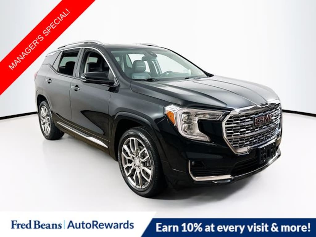 2023 GMC Terrain Denali 1.5L DOHC 9-Speed Automatic AWD 4D Sport Utility Ebony Twilight Metallic AWD, 2 USB Data Ports, 2 USB Data Ports w/SD Card Reader, 3.47 Axle Ratio, 4-Wheel Disc Brakes, 6-Way Power Front Passenger Seat, 7 Speakers, 8-Way Power Driver Seat Adjuster, ABS brakes, Air Conditioning, Alloy wheels, AM/FM radio: SiriusXM, Auto High-beam Headlights, Auto-dimming Rear-View mirror, Automatic temperature control, Bluetooth® For Phone, Brake assist, Bumpers: body-color, Compass, Delay-off headlights, Driver & Front Passenger Heated Seats, Driver door bin, Driver vanity mirror, Dual front impact airbags, Dual front side impact airbags, Electronic Stability Control, Emergency communication system: OnStar and GMC connected services capable, Four wheel independent suspension, Front anti-roll bar, Front Bucket Seats, Front Center Armrest, Front dual zone A/C, Front fog lights, Front Passenger 2-Way Power Lumbar, Front reading lights, Fully automatic headlights, Garage door transmitter, Heads-Up Display, Heated door mirrors, Heated front seats, Heated steering wheel, Illuminated entry, Lane Departure Warning System, License Plate Front Mounting Package, Low tire pressure warning, Memory seat, Navigation system: GMC Connected Navigation, Occupant sensing airbag, Outside temperature display, Overhead airbag, Overhead console, Panic alarm, Passenger door bin, Passenger vanity mirror, Perforated Leather-Appointed Seat Trim, Power door mirrors, Power Driver Lumbar Control, Power driver seat, Power Liftgate, Power passenger seat, Power steering, Power windows, Preferred Equipment Group 5SA, Premium 7-Speaker Bose Sound System w/Amplifier, Radio data system, Radio: GMC Infotainment Audio System w/Navigation, Rear anti-roll bar, Rear seat center armrest, Rear window defroster, Rear window wiper, Remote keyless entry, Roof rack: rails only, Security system, SiriusXM Radio, Skyscape Power Sunroof w/Power Sunscreen, Speed control, Speed-sensing steering, Split folding rear seat, Spoiler, Steering wheel mounted audio controls, Tachometer, Telescoping steering wheel, Tilt steering wheel, Traction control, Trip computer, Turn signal indicator mirrors, Variably intermittent wipers, Wheels: 19" x 7.5" Bright Machined Aluminum, Wireless Apple CarPlay/Wireless Android Auto, AWD.