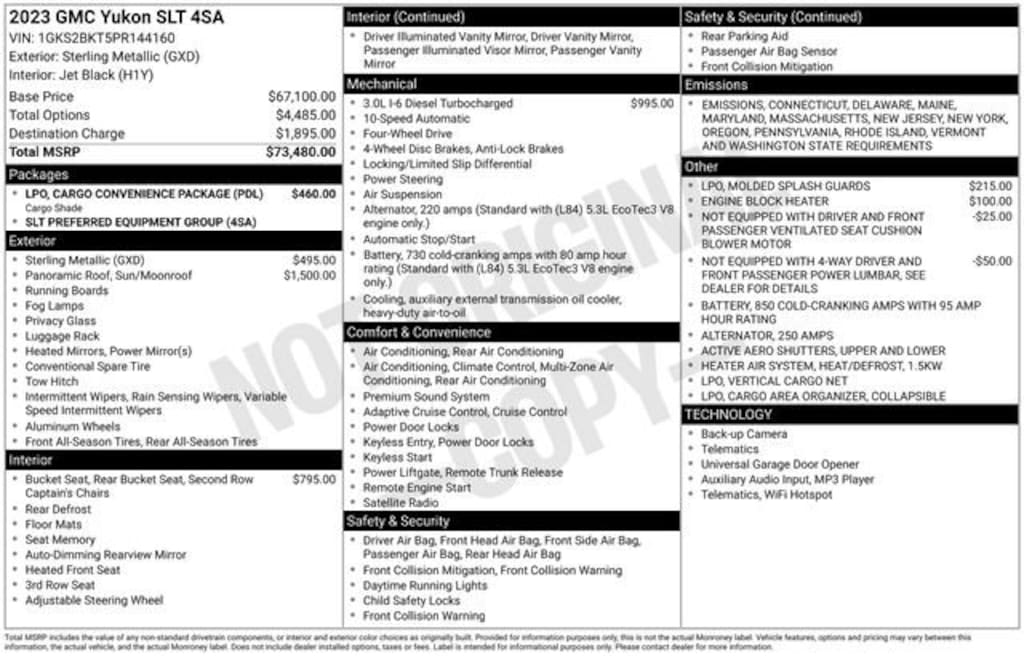 Recent Arrival! 2023 GMC Yukon SLT 3.0L I6 10-Speed Automatic with Overdrive 4WD 4D Sport Utility Sterling Metallic 4WD.