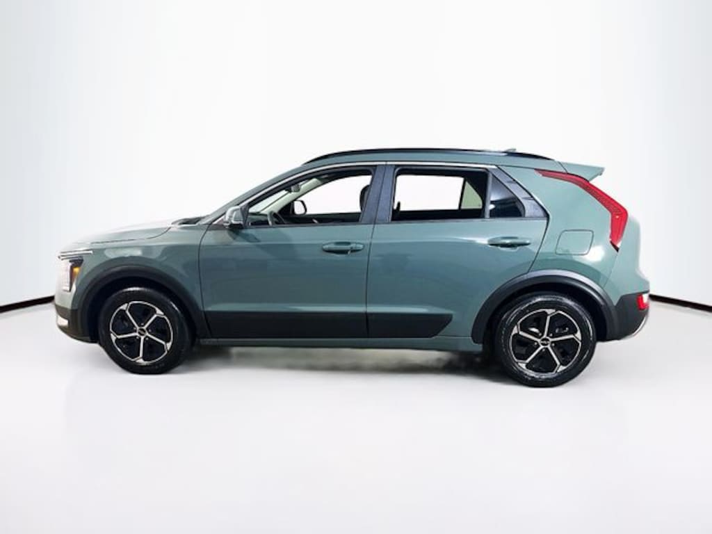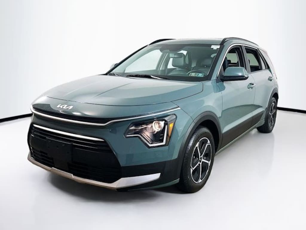 2023 Kia Niro EX 1.6L I4 DGI Hybrid DOHC 16V LEV3-SULEV30 6-Speed Automatic FWD 4D Sport Utility Cityscape Green 1.6L I4 DGI Hybrid DOHC 16V LEV3-SULEV30, 4-Wheel Disc Brakes, 4.438 Axle Ratio, 6 Speakers, ABS brakes, Air Conditioning, Alloy wheels, AM/FM radio: SiriusXM, Apple CarPlay & Android Auto, Auto High-beam Headlights, Automatic temperature control, Brake assist, Bumpers: body-color, Cargo Net, Carpet Floor Mats, Cloth & Vegan Leather-Trimmed Seats, Delay-off headlights, Driver door bin, Driver vanity mirror, Dual front impact airbags, Dual front side impact airbags, Electronic Stability Control, Emergency communication system: Kia Connect (includes 1 year free trial), Exterior Parking Camera Rear, Four wheel independent suspension, Front anti-roll bar, Front Bucket Seats, Front Center Armrest, Front dual zone A/C, Front reading lights, Fully automatic headlights, Heated door mirrors, Heated Front Bucket Seats, Heated front seats, Illuminated entry, Knee airbag, Leather Shift Knob, Low tire pressure warning, Navigation System, Occupant sensing airbag, Outside temperature display, Overhead airbag, Overhead console, Panic alarm, Passenger door bin, Passenger vanity mirror, Power door mirrors, Power driver seat, Power steering, Power windows, Radio: AM/FM/HD/SiriusXM, Rain sensing wipers, Rear anti-roll bar, Rear seat center armrest, Rear window defroster, Rear window wiper, Remote keyless entry, Security system, Smart Key w/ Push Button and Remote Start, Speed control, Speed-sensing steering, Split folding rear seat, Spoiler, Steering wheel mounted audio controls, Telescoping steering wheel, Tilt steering wheel, Traction control, Trip computer, Turn signal indicator mirrors, Two-Level Luggage Board, Variably intermittent wipers, Wheels: 16" Alloy Aero, 1.6L I4 DGI Hybrid DOHC 16V LEV3-SULEV30.