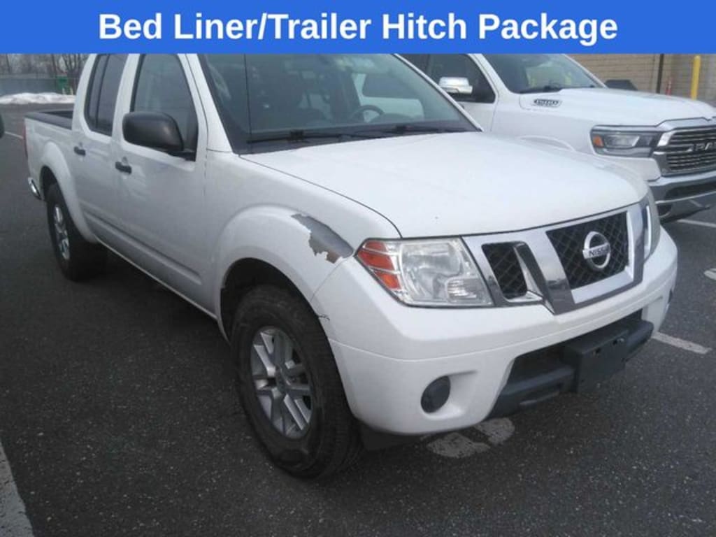 This Frontier SV also comes equipped with a range of premium features that enhance both comfort and convenience, including cloth seating, a front center armrest, and a split-folding rear seat. The exterior is finished in a sleek white color, complemented by body-color bumpers and a rear step bumper for easy access to the truck bed.
