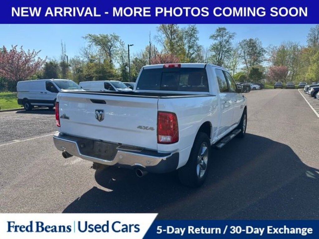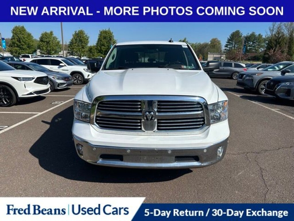 Recent Arrival! 2017 Ram 1500 Big Horn HEMI 5.7L V8 Multi Displacement VVT 8-Speed Automatic 4WD 4D Crew Cab Bright White Clearcoat Air Conditioning ATC w/Dual Zone Control, Auto-Dimming Exterior Mirrors, Auto-Dimming Rear-View Mirror, Big Horn Badge, Big Horn Regional Package, Bright/Bright Billets Grille, Class IV Receiver Hitch, Dual Rear Exhaust w/Bright Tips, Electric Shift-On-Demand Transfer Case, Electroluminescent Instrument Cluster, Exterior Mirrors Courtesy Lamps, Exterior Mirrors w/Supplemental Signals, Fog Lamps, Glove Box Lamp, GPS Navigation, Heated Front Seats, Heated Seats & Wheel Group (DISC), Heated Steering Wheel, Leather Wrapped Steering Wheel, LED Bed Lighting, Overhead Console w/Garage Door Opener, ParkSense Front/Rear Park Assist System, ParkView Rear Back-Up Camera, Power Heated Fold-Away Mirrors, Power-Folding Mirrors, Premium Cloth 40/20/40 Bench Seat, Quick Order Package 26S Big Horn, Radio: Uconnect 3C w/8.4" Display, Rear Dome w/On/Off Switch Lamp, Remote Start System, Security Alarm, Steering Wheel Mounted Audio Controls, Sun Visors w/Illuminated Vanity Mirrors, Underhood Lamp, Wheels: 20" x 8" Aluminum Chrome Clad.