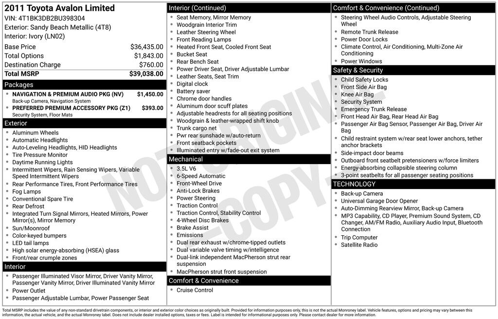 We invite you to visit our showroom and experience the exceptional quality and value of this remarkable 2011 Toyota Avalon Limited. Our knowledgeable sales team is here to answer any questions you may have and help you discover why this Avalon is the perfect addition to your garage.