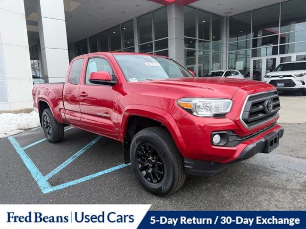 Recent Arrival! 2022 Toyota Tacoma SR5 2.7L SMPI DOHC 6-Speed Automatic 4WD 4D Access Cab Barcelona Red Metallic 5 Day Return / 30 Day Exchange, Auto Reward Program, Tacoma SR5, 4D Access Cab, 2.7L SMPI DOHC, 6-Speed Automatic, 4WD, Barcelona Red Metallic, Cement w/Fabric Seat Trim (FD), ABS brakes, Active Cruise Control, Electronic Stability Control, Illuminated entry, Low tire pressure warning, Remote keyless entry, Traction control.