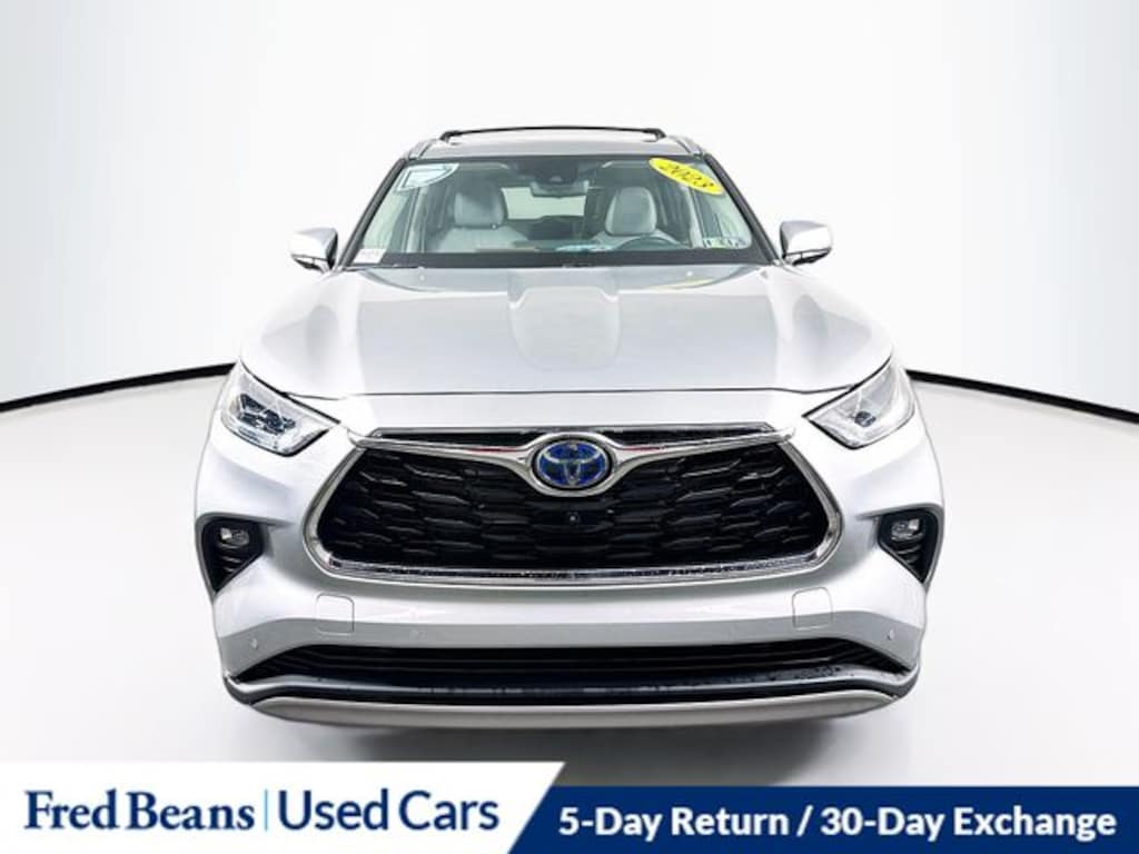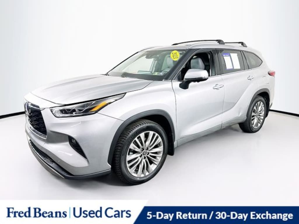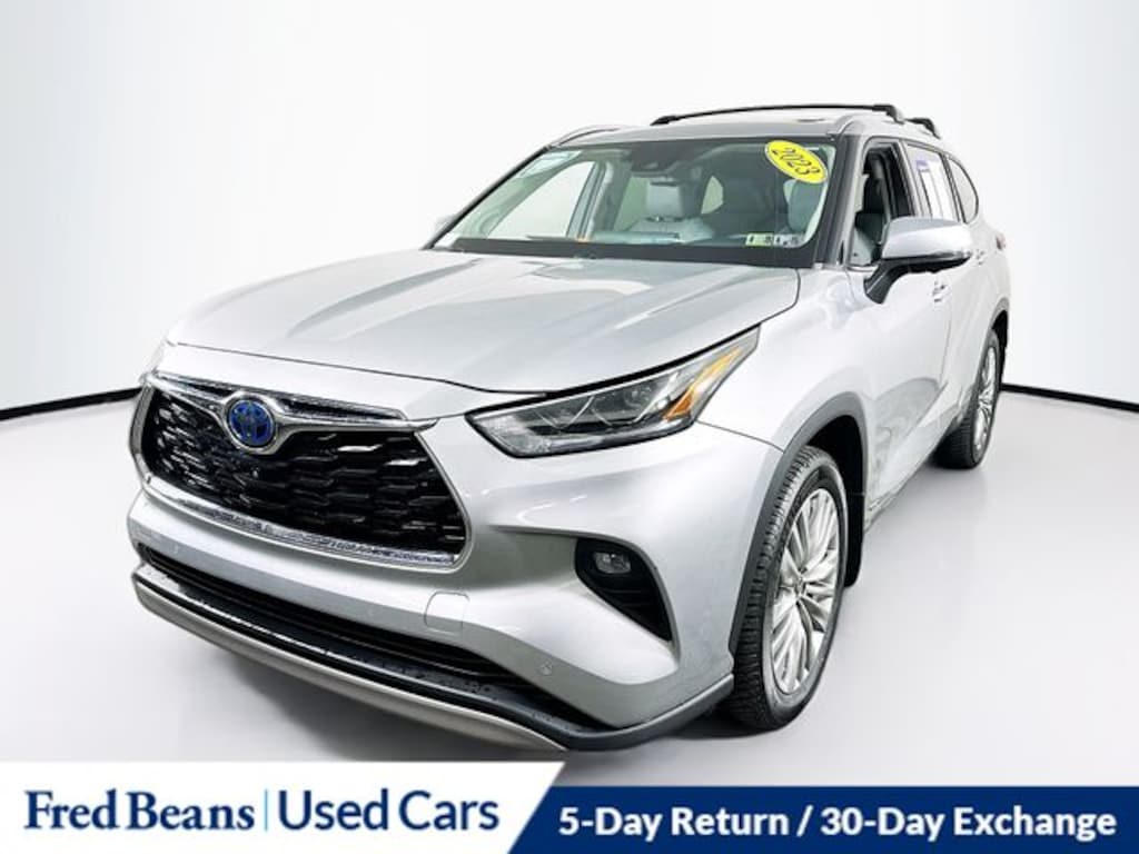 2023 Toyota Highlander Hybrid Platinum 2.5L I4 PDI Hybrid DOHC 16V LEV3-SULEV30 eCVT AWD 4D Sport Utility Silver Auto Reward Program, Free First Oil Change, Highlander Hybrid Platinum, 4D Sport Utility, 2.5L I4 PDI Hybrid DOHC 16V LEV3-SULEV30, AWD, Silver, Black Leather, High Grade LED, Panoramic Moonroof, Panoramic View Monitor, Platinum Package.