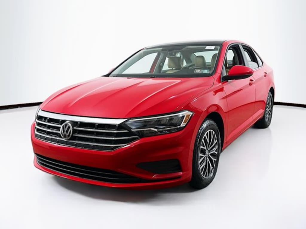 Recent Arrival! 2019 Volkswagen Jetta 1.4T SE 1.4L TSI 8-Speed Automatic with Tiptronic FWD 4D Sedan Tornado Red Dark Beige Leatherette, 4 Speakers, 4-Wheel Disc Brakes, ABS brakes, Air Conditioning, Alloy wheels, AM/FM radio, Automatic temperature control, Brake assist, Bumpers: body-color, Delay-off headlights, Driver door bin, Driver vanity mirror, Dual front impact airbags, Dual front side impact airbags, Electronic Stability Control, Exterior Parking Camera Rear, Front anti-roll bar, Front Bucket Seats, Front Center Armrest, Front dual zone A/C, Front reading lights, Front wheel independent suspension, Fully automatic headlights, Heated door mirrors, Heated Front Comfort Seats, Heated front seats, Illuminated entry, Leather Shift Knob, Low tire pressure warning, Occupant sensing airbag, Outside temperature display, Overhead airbag, Overhead console, Panic alarm, Passenger door bin, Passenger vanity mirror, Perforated V-Tex Leatherette Seat Trim, Power door mirrors, Power moonroof, Power steering, Power windows, Radio data system, Radio: Composition Color w/6.5" Touchscreen, Rear anti-roll bar, Rear reading lights, Rear seat center armrest, Rear window defroster, Remote keyless entry, Speed control, Speed-sensing steering, Split folding rear seat, Steering wheel mounted audio controls, Tachometer, Telescoping steering wheel, Tilt steering wheel, Traction control, Trip computer, Variably intermittent wipers, Wheels: 16" Two-Tone Rama Black, Dark Beige Leatherette.