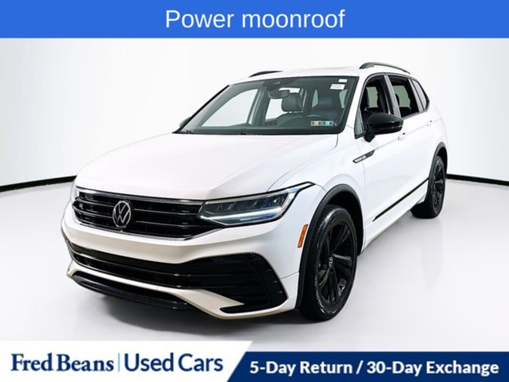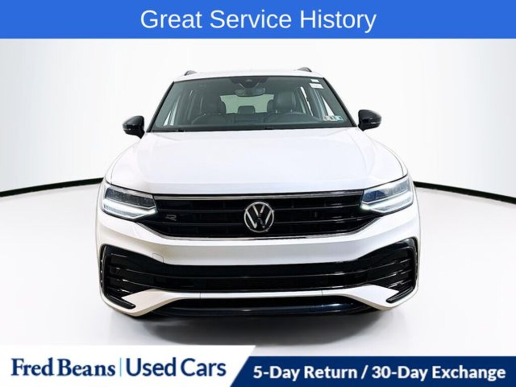 2023 Volkswagen Tiguan 2.0T SE R-Line Black 2.0L TSI DOHC 8-Speed Automatic with Tiptronic AWD 4D Sport Utility White Local Trade, Great Service History, AWD, Heated front seats, Power Liftgate, Power moonroof, 3.33 Axle Ratio, 4-Wheel Disc Brakes, 4-Wheel Independent Suspension, 6 Speakers, ABS brakes, Air Conditioning, Alloy wheels, AM/FM radio: SiriusXM with 360L, Auto-dimming Rear-View mirror, Automatic temperature control, Brake assist, Bumpers: body-color, Compass, Delay-off headlights, Driver door bin, Driver vanity mirror, Dual front impact airbags, Dual front side impact airbags, Electronic Stability Control, Emergency communication system: VW Car-Net Safe & Secure 5-year, Exterior Parking Camera Rear, Four wheel independent suspension, Front anti-roll bar, Front Bucket Seats, Front Center Armrest, Front dual zone A/C, Front reading lights, Fully automatic headlights, Heated door mirrors, Heated Front Comfort Seats, Illuminated entry, Leather Shift Knob, Leather steering wheel, Low tire pressure warning, Occupant sensing airbag, Outside temperature display, Overhead airbag, Overhead console, Panic alarm, Passenger door bin, Passenger vanity mirror, Perforated V-Tex Leatherette Seating Surfaces, Power door mirrors, Power driver seat, Power steering, Power windows, Radio data system, Radio: MIB3 Composition Media AM/FM/HD, Rain sensing wipers, Rear anti-roll bar, Rear reading lights, Rear seat center armrest, Rear window defroster, Rear window wiper, Remote keyless entry, Security system, Speed control, Speed-sensing steering, Split folding rear seat, Spoiler, Sport steering wheel, Steering wheel mounted audio controls, Tachometer, Telescoping steering wheel, Tilt steering wheel, Traction control, Trip computer, Turn signal indicator mirrors, Variably intermittent wipers, Wheels: 19" Black Painted Twin 5-Spoke Alloy, AWD, Heated front seats, Power Liftgate, Power moonroof.